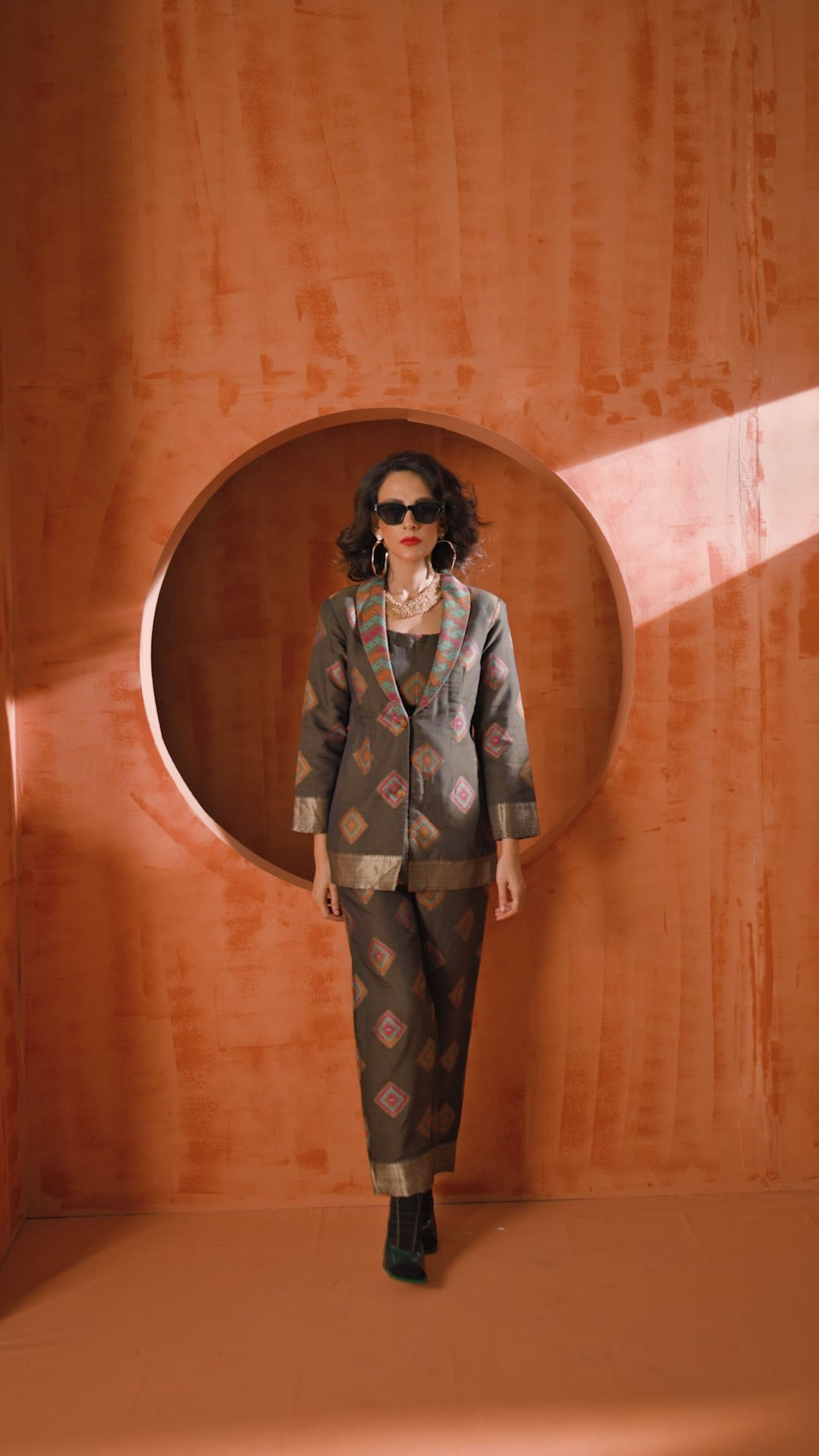 Designer Banarasi 3 piece Coat and Trouser Co-Ord Set