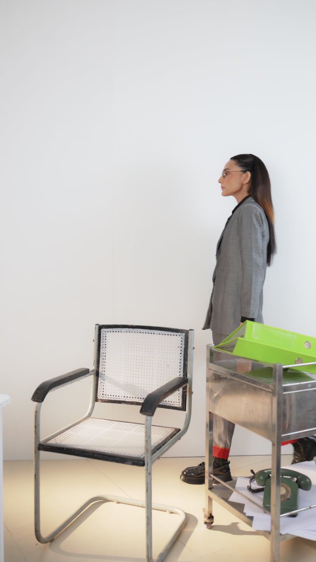 Jacket: The longline jacket is a statement piece, offering a sophisticated fit with sharp shoulder pads and a soft satin lining that ensures a comfortable and structured drape. The subtle stripes in the fabric add a touch of modern elegance, while the deep, rich color exudes timeless charm. The jacket's tailored fit accentuates the waist, creating a flattering silhouette that complements the overall look.