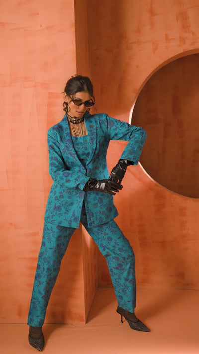 Designer Printed 3 piece Coat and Trouser Co-Ord Set