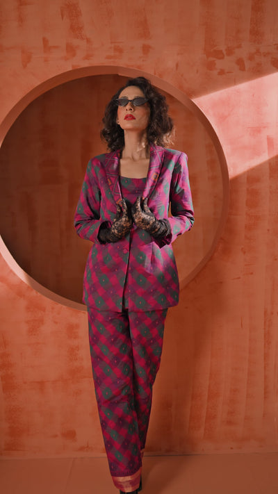 Designer Printed 3 piece Coat and Trouser Co-Ord Set